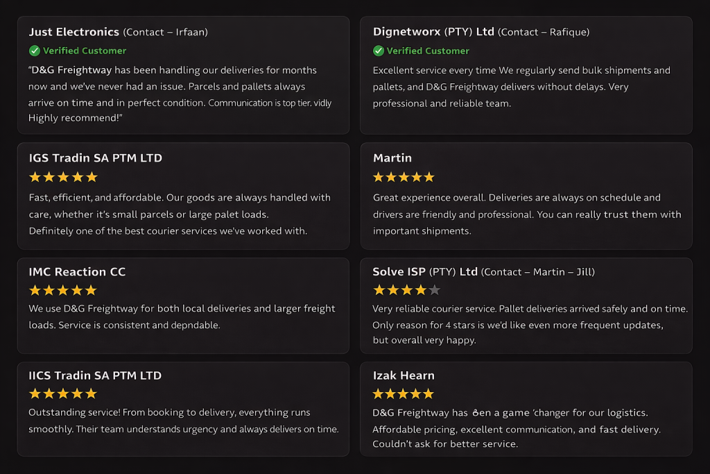 D&G FREIGHTWAY is a leading courier company dedicated to providing exceptional service throughout South Africa. With a strong
